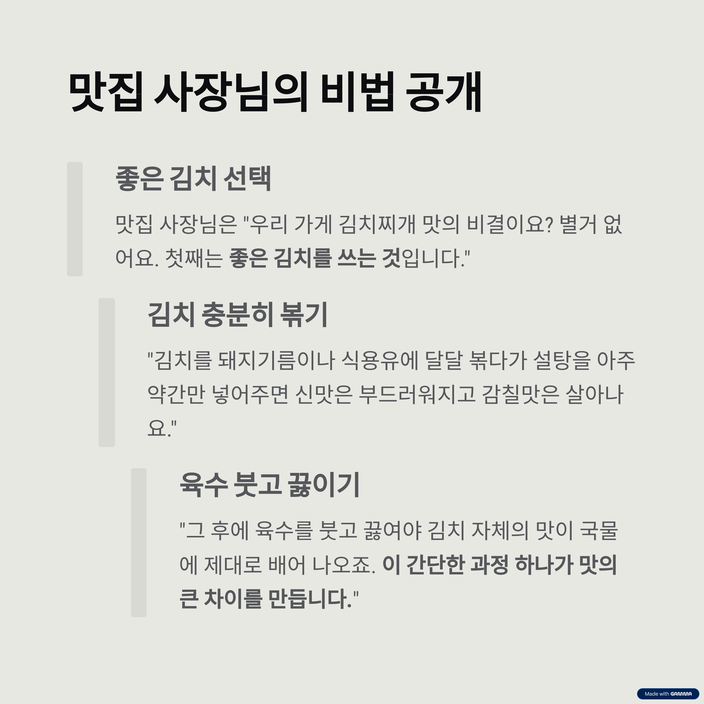 맛집 사장님의 조언: "김치찌개, 이렇게 끓여야 제맛이지!"