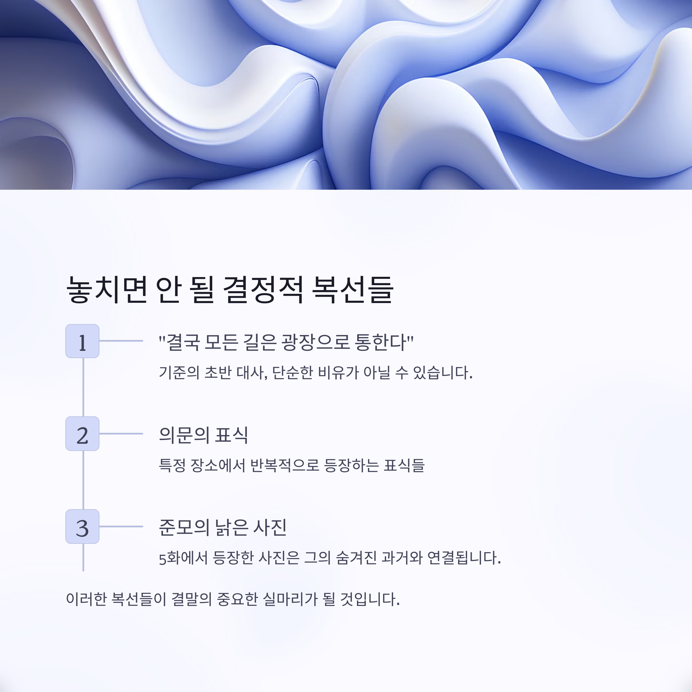 본 글에서는 주요 등장인물들의 관계와 극 중 복선을 토대로 가능한 결말 시나리오들을 심층적으로 살펴보고자 합니다.