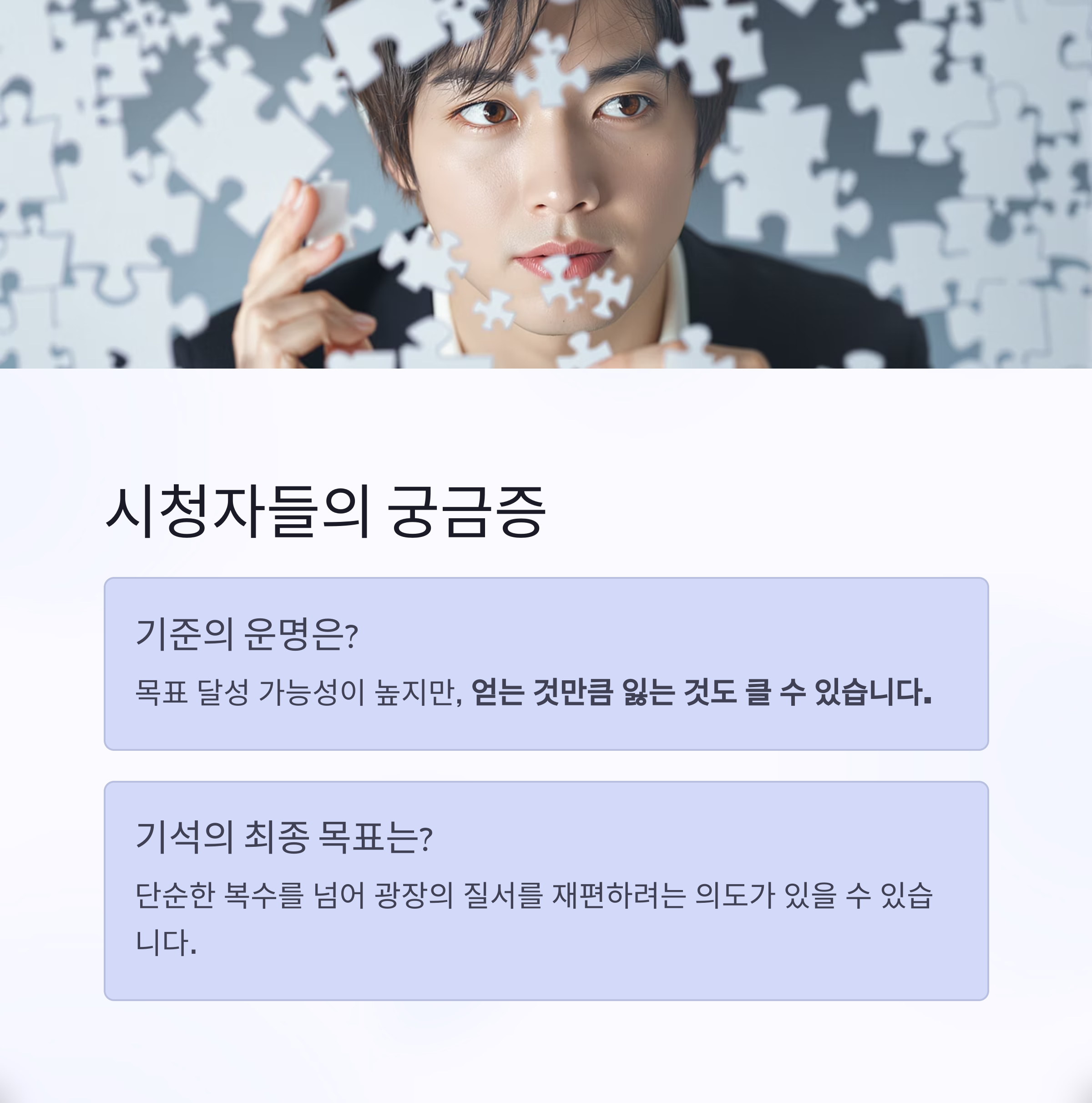 그의 최종 목표는 단순한 복수를 넘어, 자신만의 방식으로 광장의 질서를 재편하는 것일 수 있습니다.