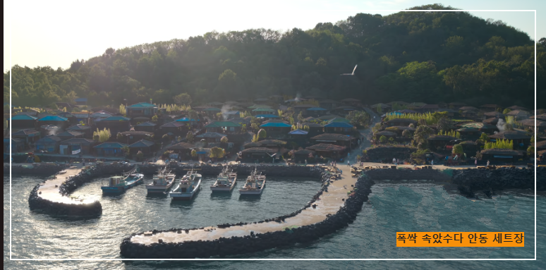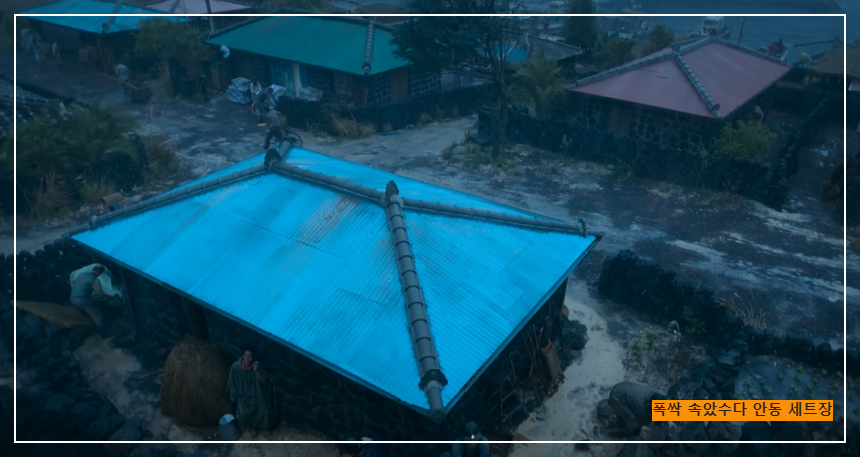 1950년대 제주를 완벽하게 재현하기 위해 제작진은 경상북도 안동시 풍천면 호민저수지 인근에 거대한 세트장을 조성했습니다. 이곳에는 어촌 마을 집 80채, 배 4척, 현무암 돌담까지 세세하게 만들어져 실제 제주 해안가 마을처럼 보이도록 설계되었는데요.
