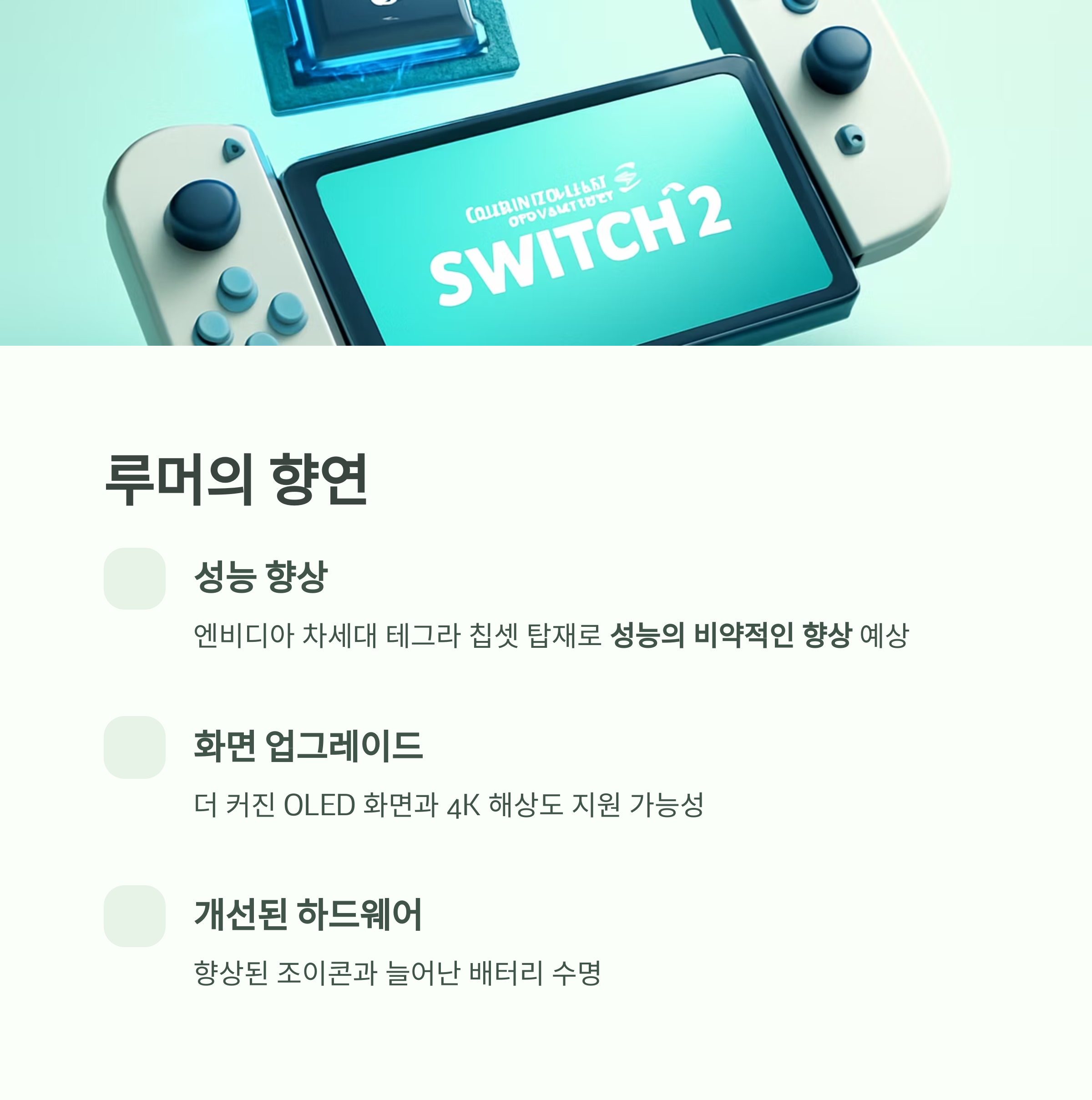 기존 스위치가 다져놓은 탄탄한 기반 위에서, 닌텐도 스위치 2는 더욱 강력한 성능과 새로운 기능으로 무장하여 우리 곁을 찾아올 것으로 예상됩니다.