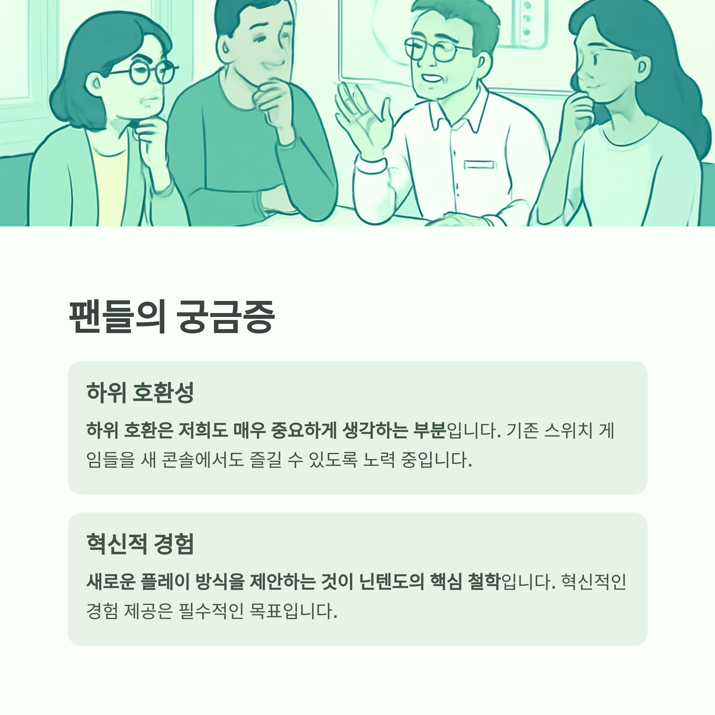 A: 하위 호환성 지원 여부는 많은 기존 스위치 유저들에게 초미의 관심사입니다.