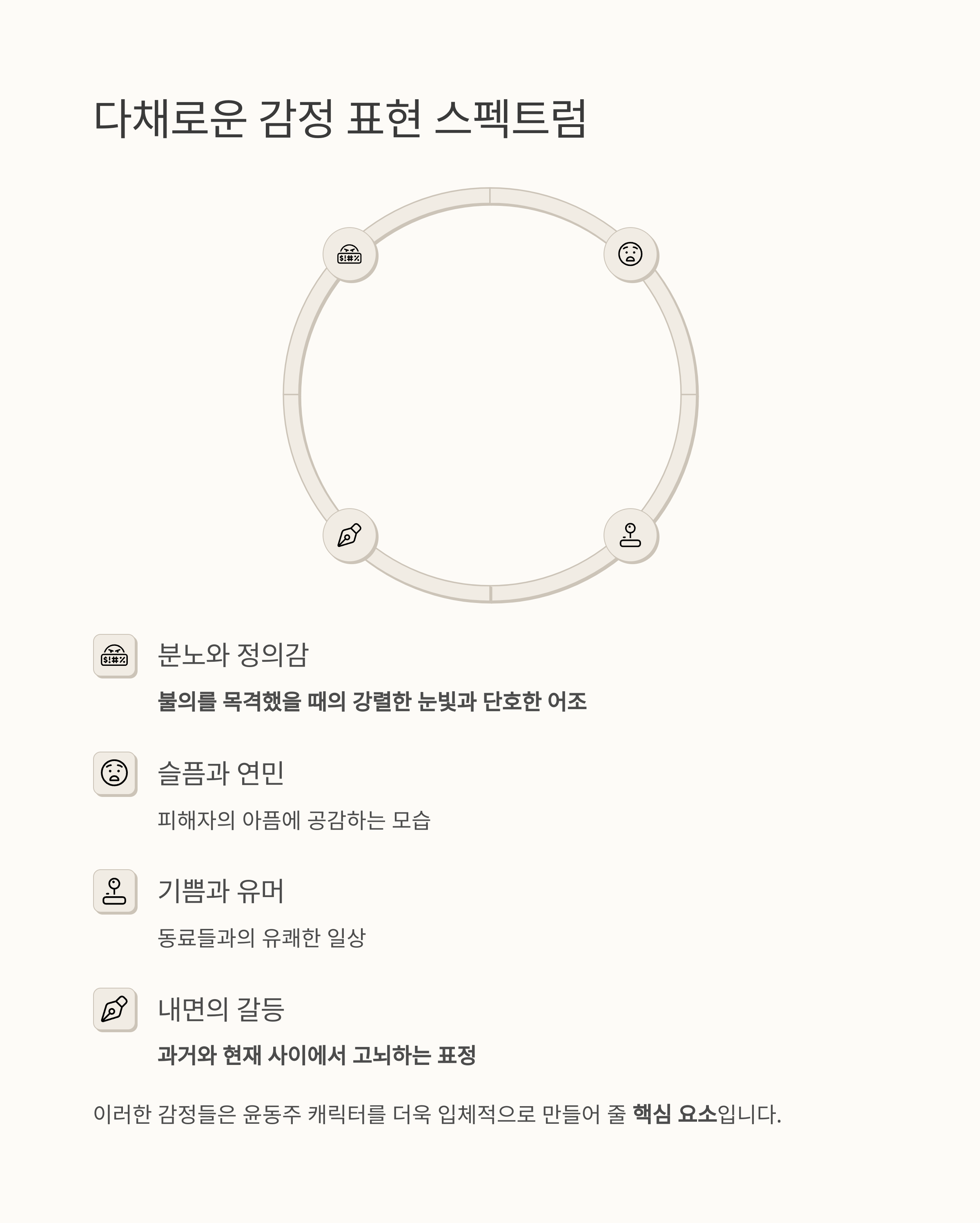A: 윤동주는 겉으로는 강하고 거칠어 보일 수 있지만, 내면에는 따뜻함과 정의감을 품고 있는 입체적인 캐릭터입니다.
