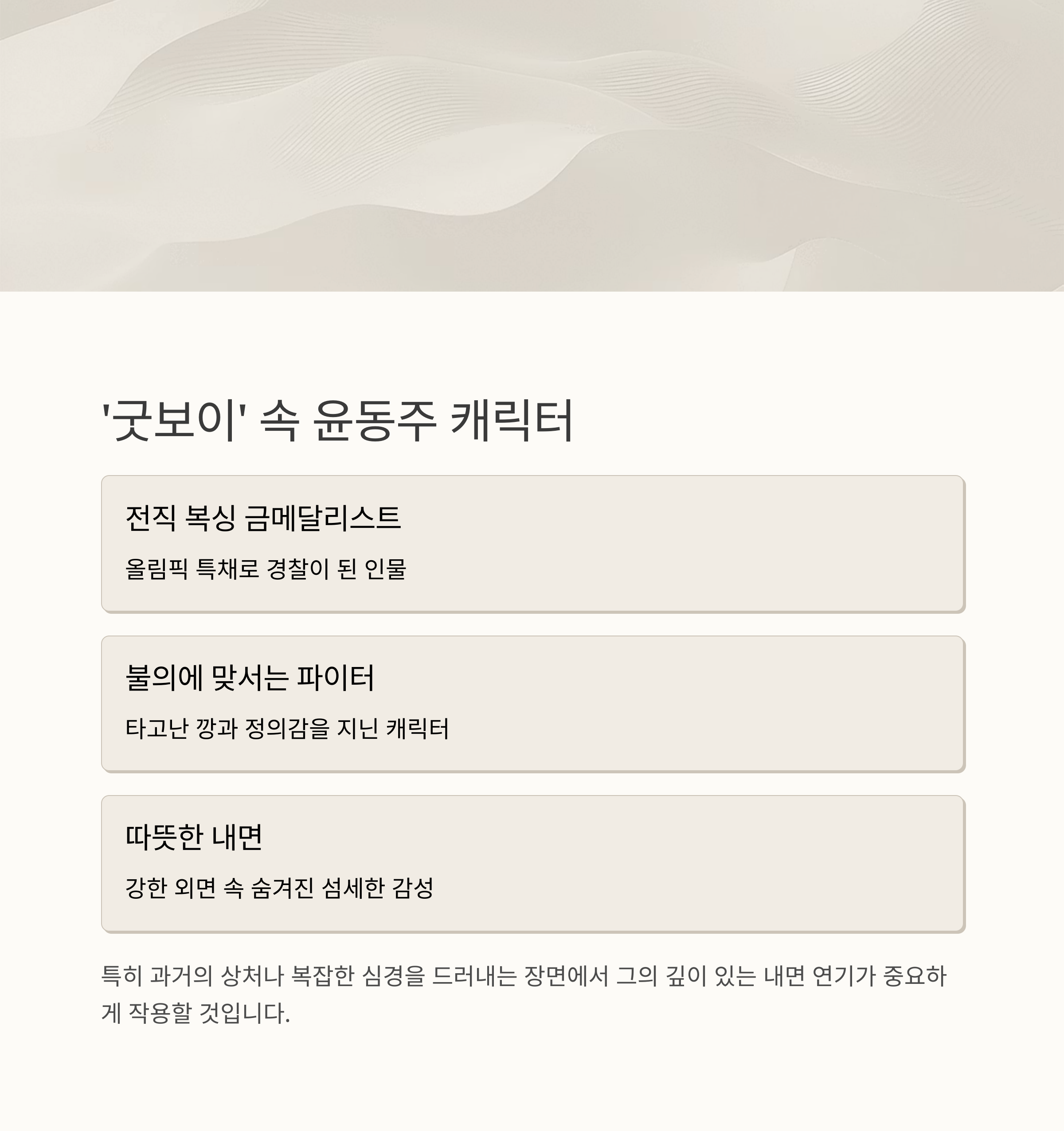 '굿보이'의 윤동주 캐릭터는 그동안 박보검이 보여주었던 모습과는 또 다른, 새롭고 강렬한 매력을 선사할 것으로 기대됩니다.