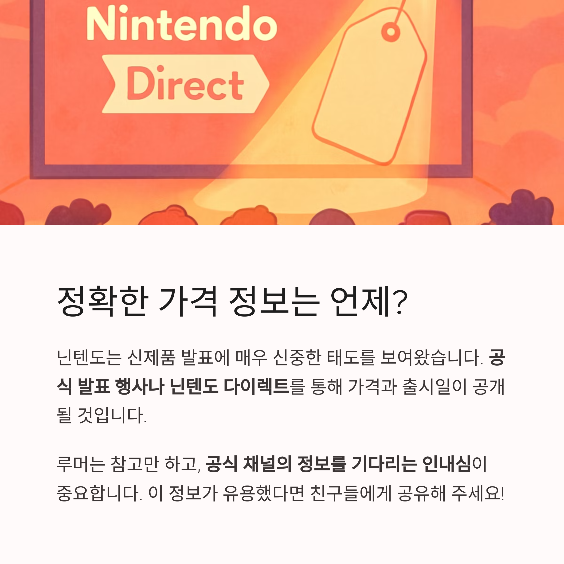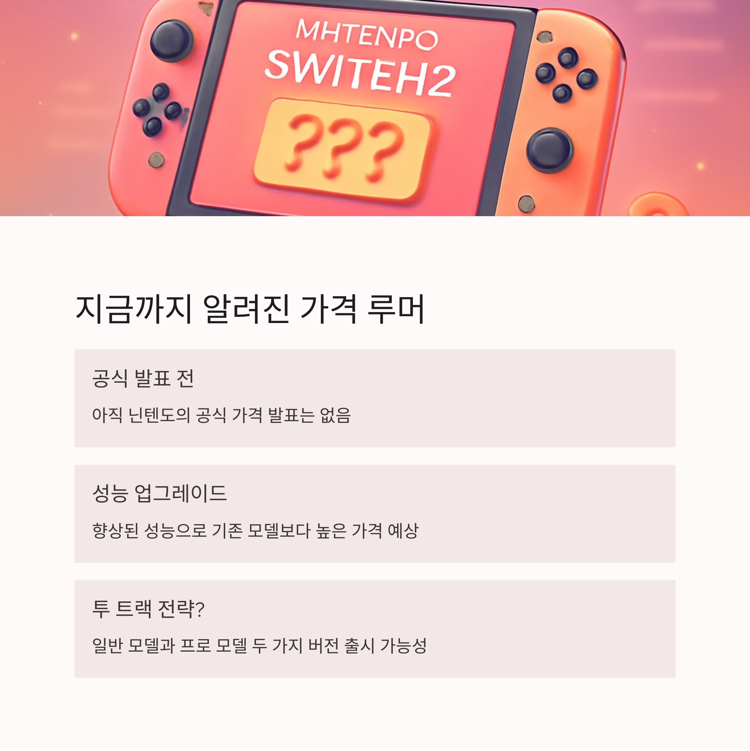 이는 어디까지나 현재까지의 정보를 종합한 예측이며, 실제 가격은 닌텐도의 공식 발표를 통해 확인해야 합니다.