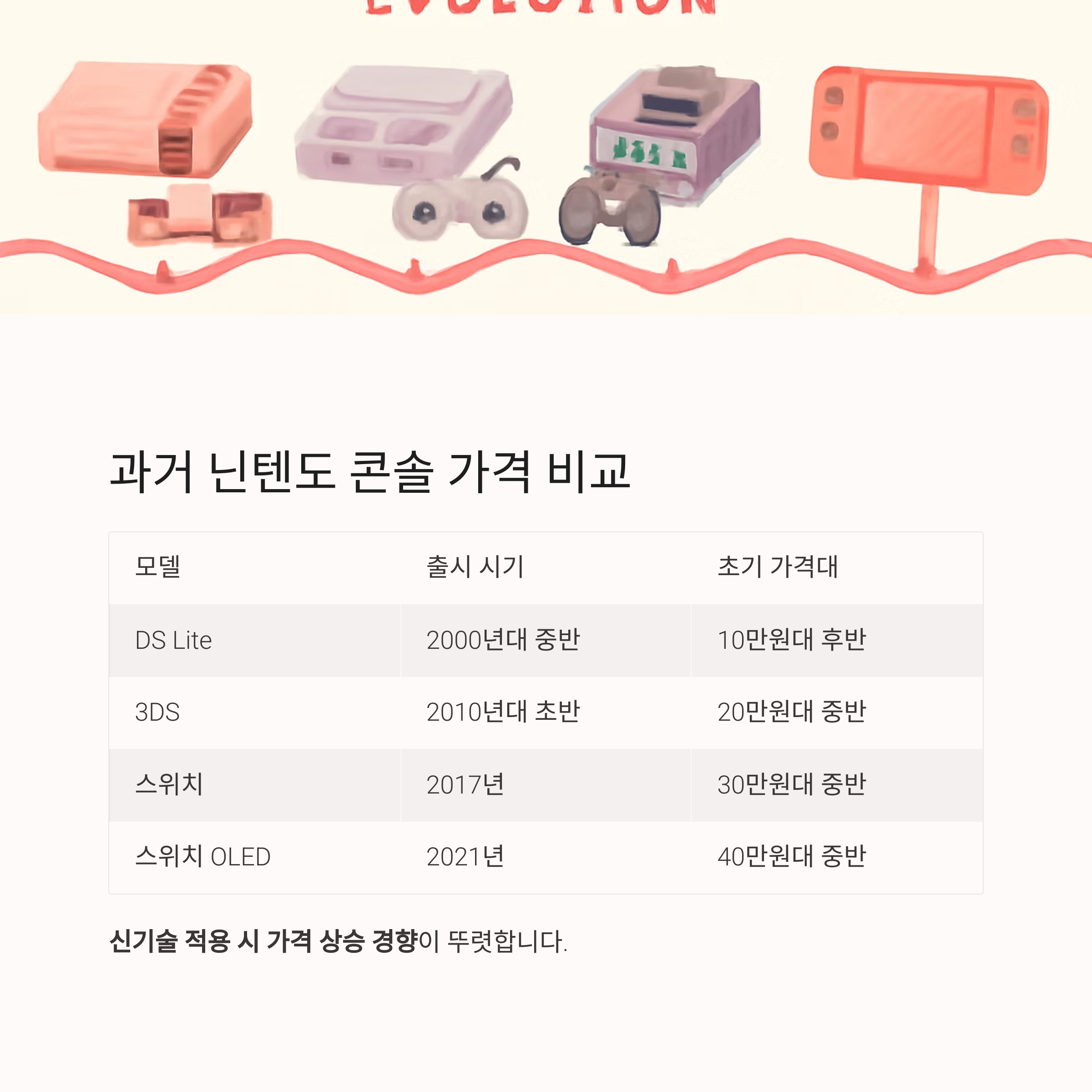 새로운 콘솔의 가격을 예측할 때 과거 모델들의 출시 가격은 중요한 참고 자료가 됩니다.