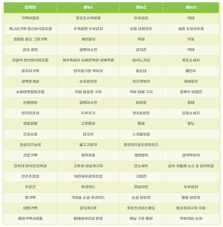 전주 가맥축제 2025 먹거리 천국, 전주 가맥안주