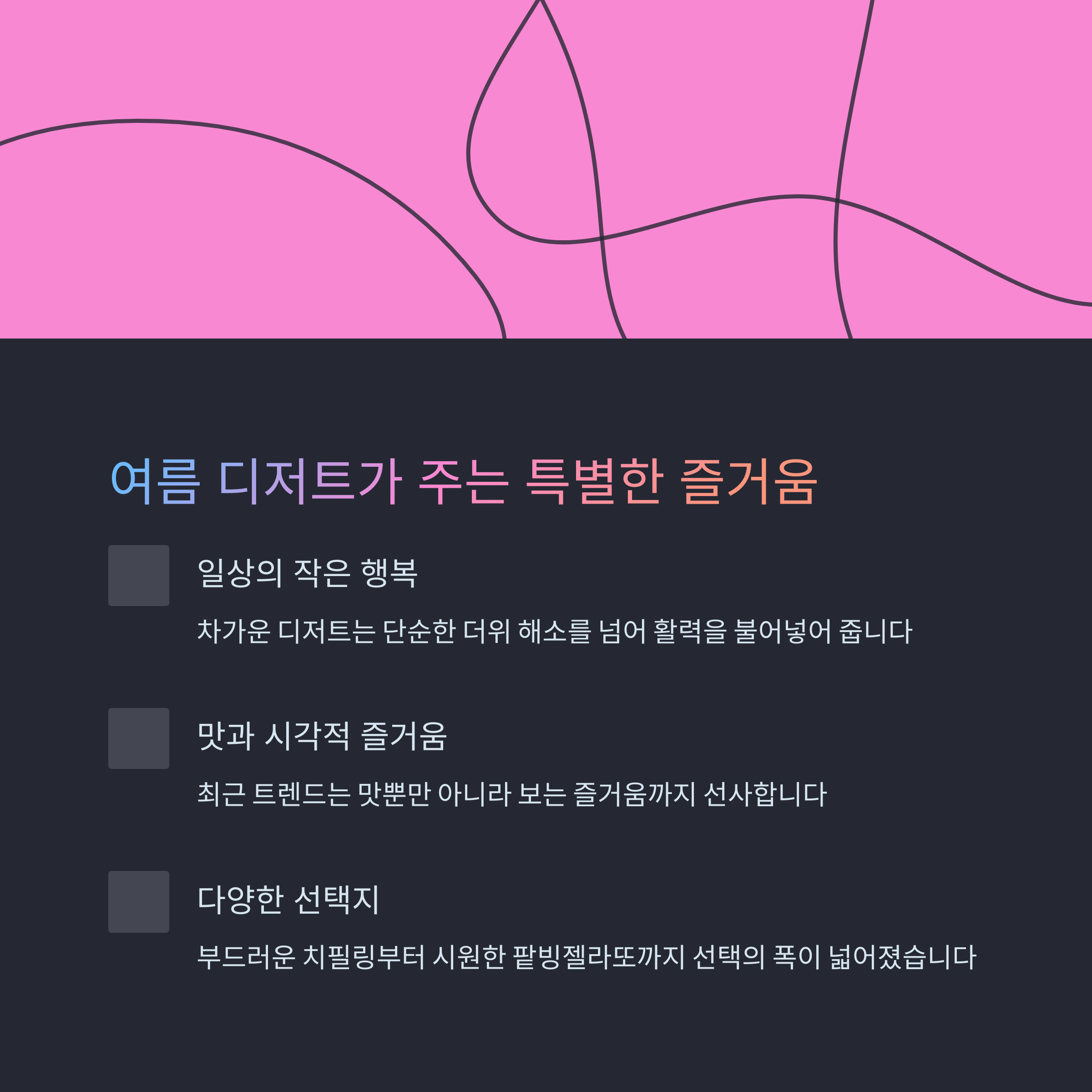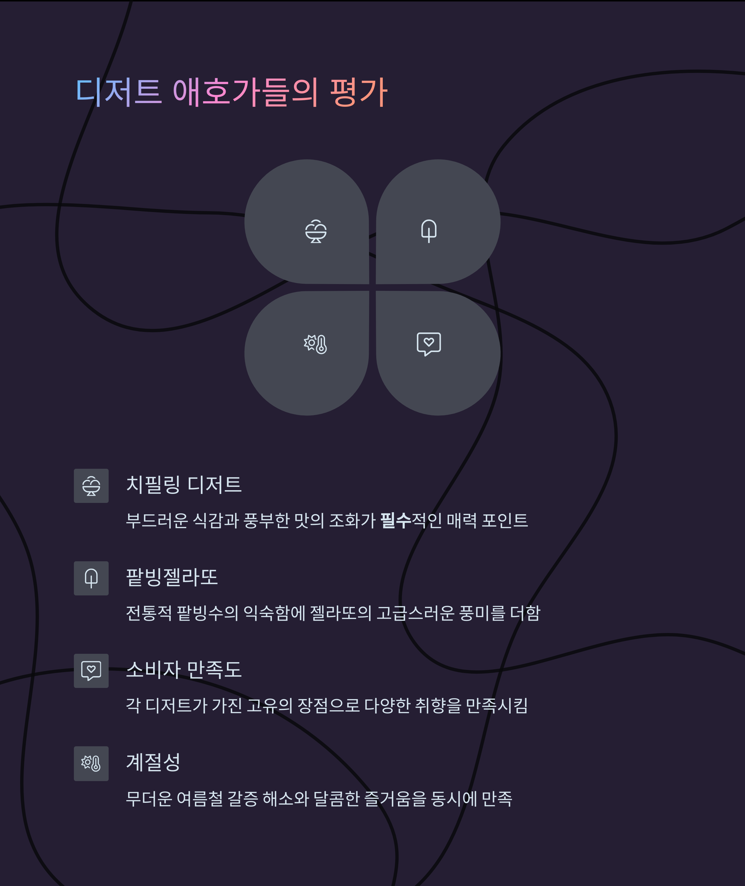 무더운 여름, 시원한 디저트가 선사하는 특별한 즐거움은 무엇일까요?