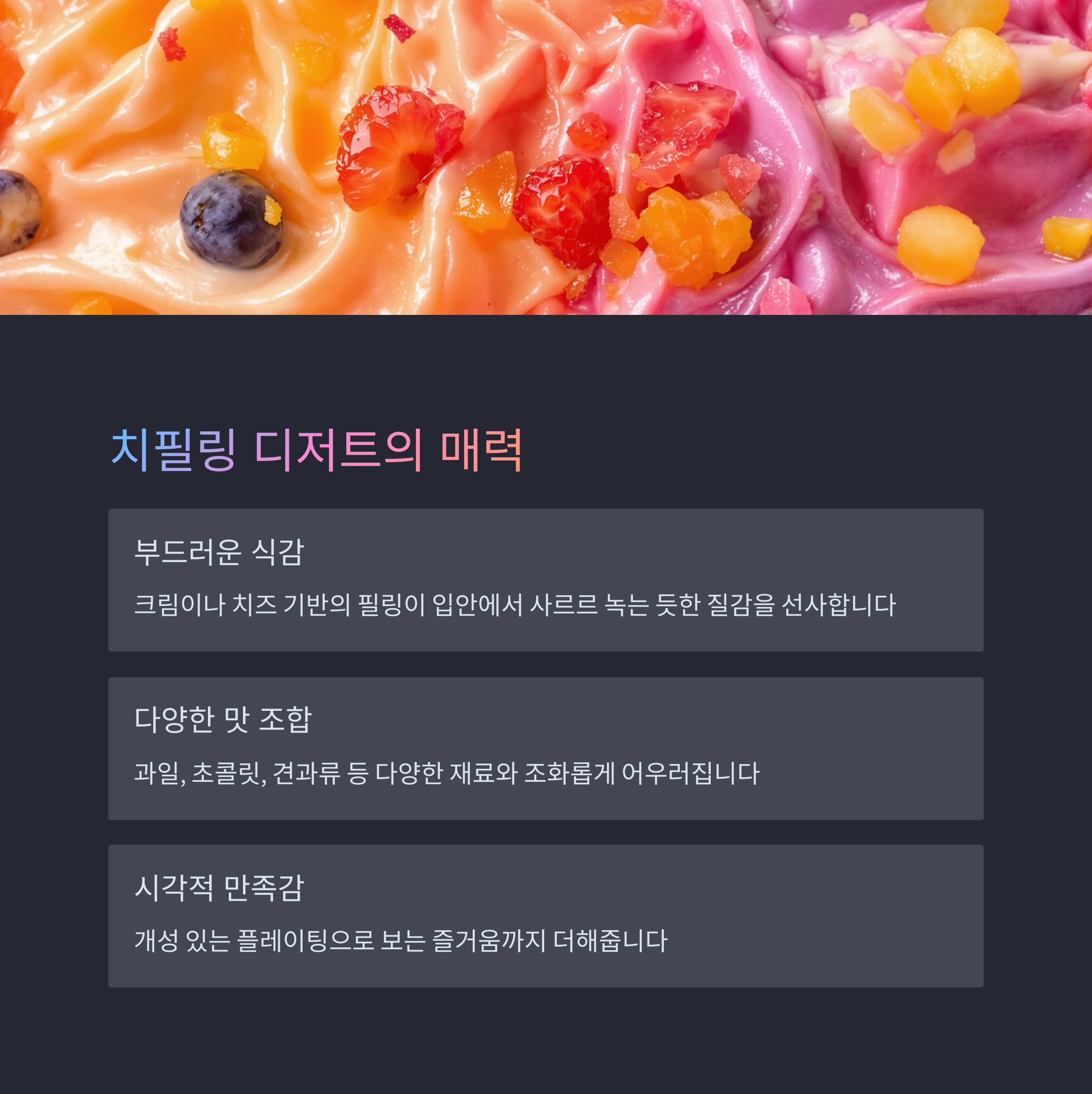 입안 가득 퍼지는 부드러움, 치필링 디저트의 매력 탐구